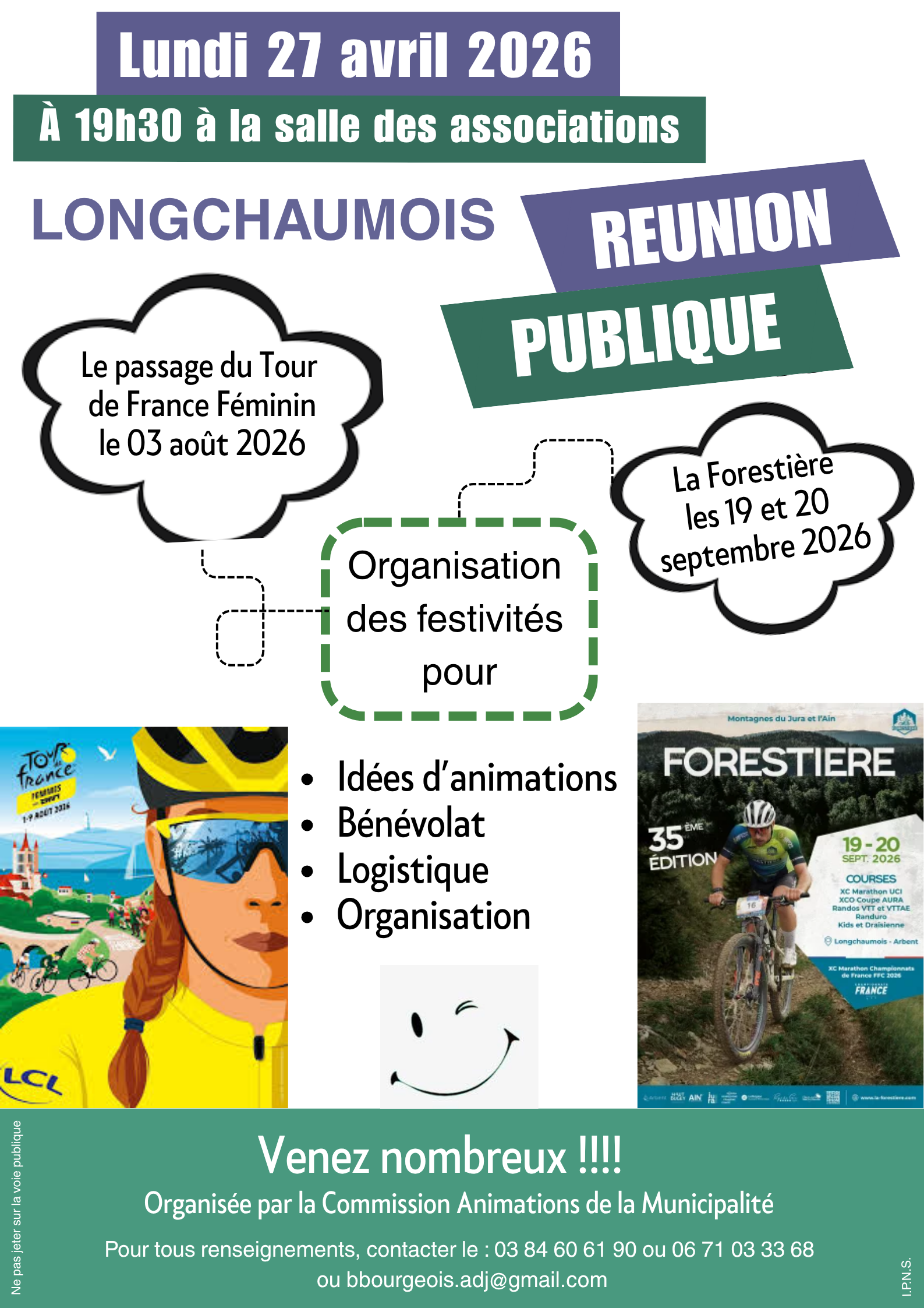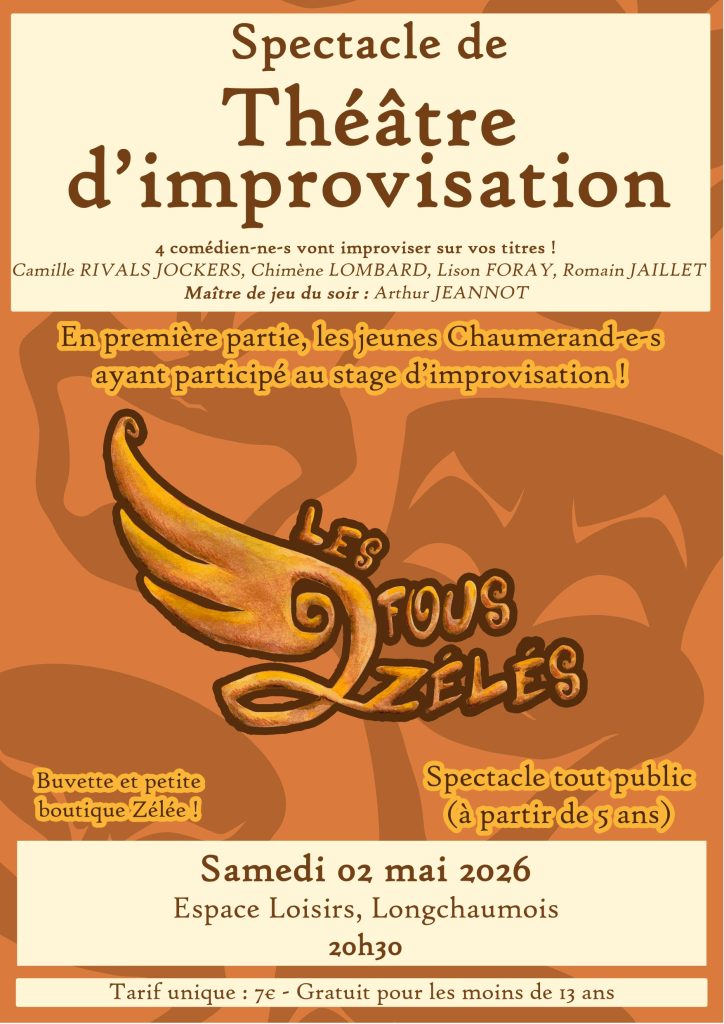 Pour la 3e fois à Longchaumois !Spectacle de théâtre d’improvisationSAMEDI 2 MAI à 20h30 à l'Espace loisirs Les comédien.ne.s vont improviser des histoires sur les titres donnés par le public.Rires et […]