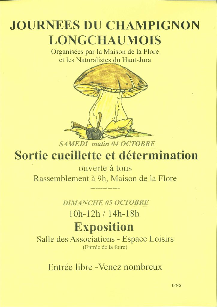 Dimanche 4 octobre 2026 de 10h à 12h et de 14h à 18h : exposition mycologique à l’Espace Loisirs – salle des associations