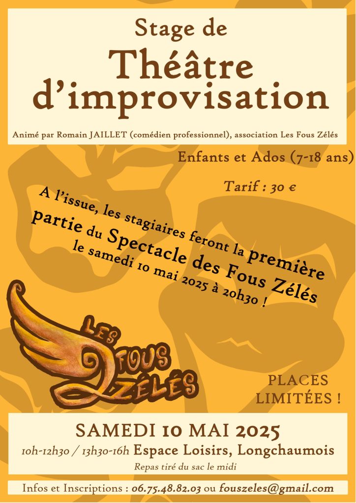 Pour la 3e fois à Longchaumois !Spectacle de théâtre d’improvisationSAMEDI 2 MAI à 20h30 à l'Espace loisirs Les comédien.ne.s vont improviser des histoires sur les titres donnés par le public.Rires et performances garanti.e.s !Spectacle tout public (à partir de 5 ans)Durée = 1h25 (+ 1 entracte de 15 minutes)Tarif unique = 7€Gratuit = - de 13 ans […]