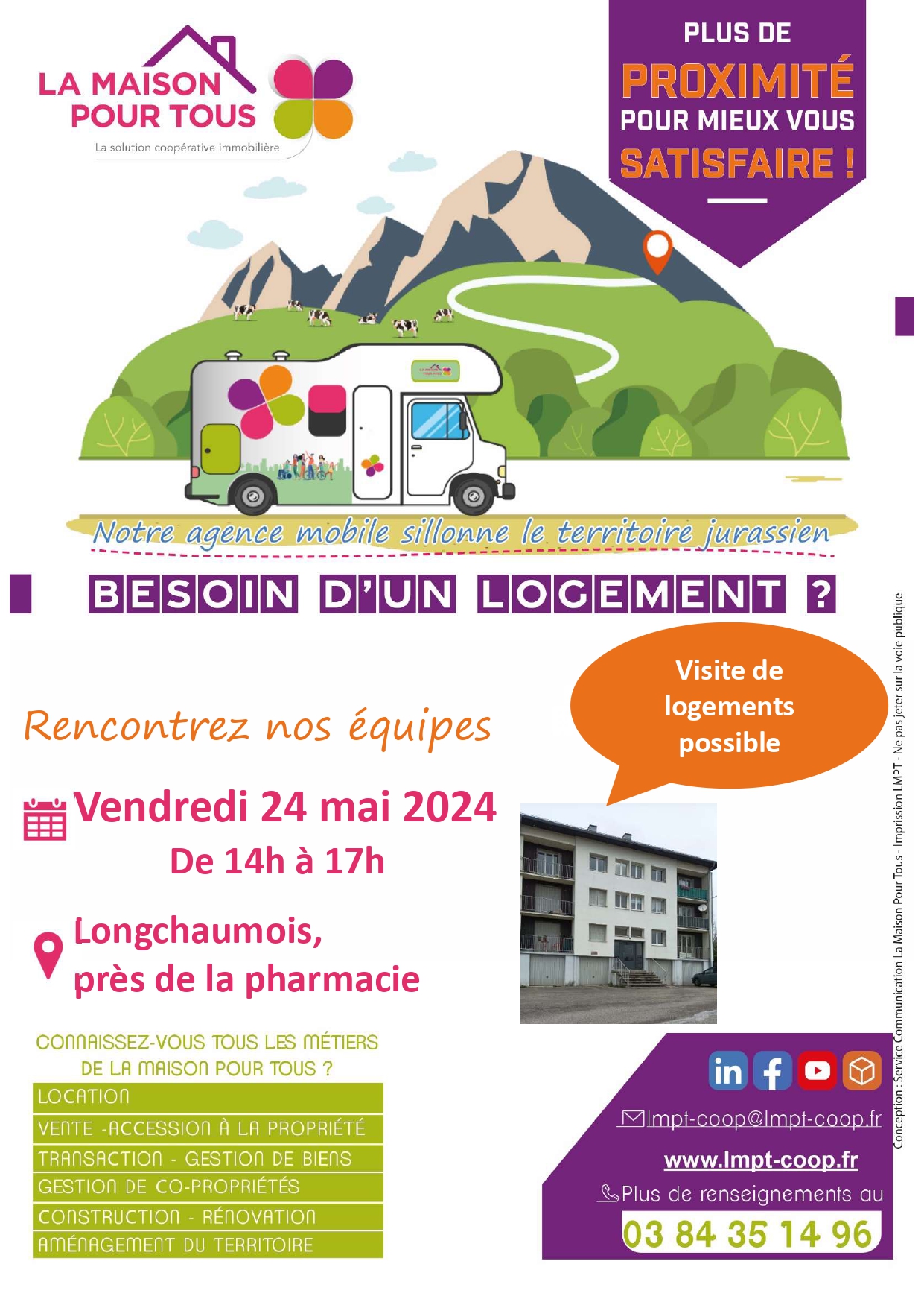 Place des Déportés LONGCHAUMOISBesoin d'un logement ? Venez rencontrer les équipes de la Maison pour Tous vendredi 24 mai de 14h à 17h